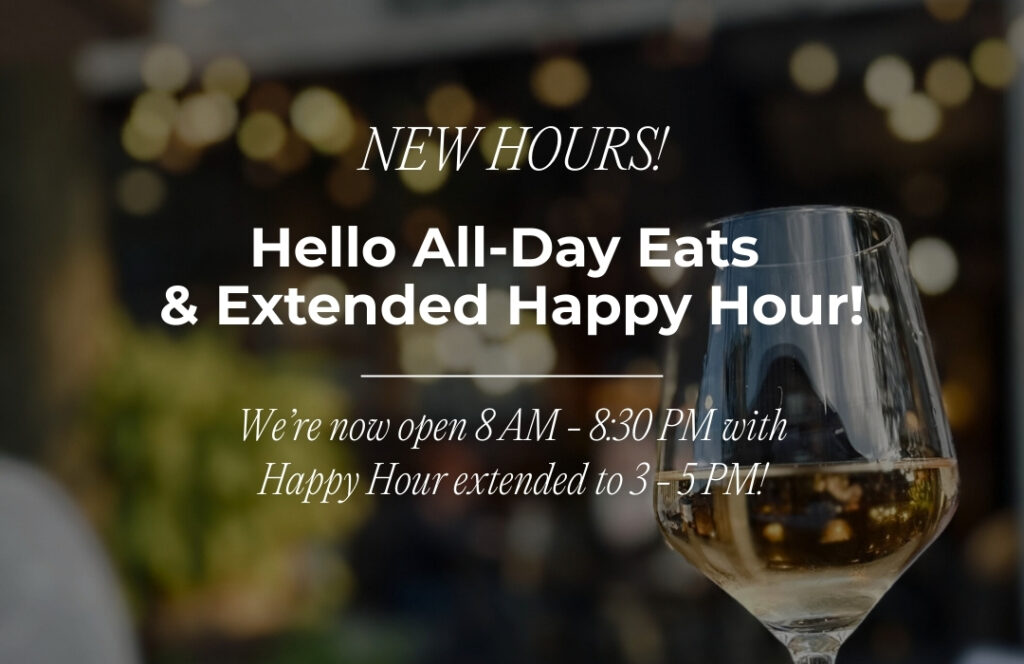 Tuesday – Sunday: 8 AM to 8:30 PM (kitchen closes at 9 PM)
